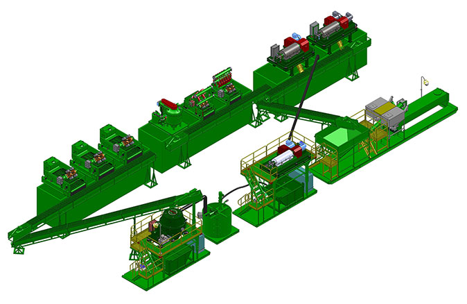 冠能模塊化廢漿處理系統是將不同功能的設備制作成獨立的小模塊,包括鉆屑輸送裝置、干燥篩裝置、泥漿中轉裝置、甩干機支架模塊、撬裝離心機
