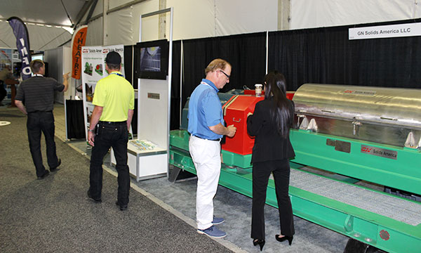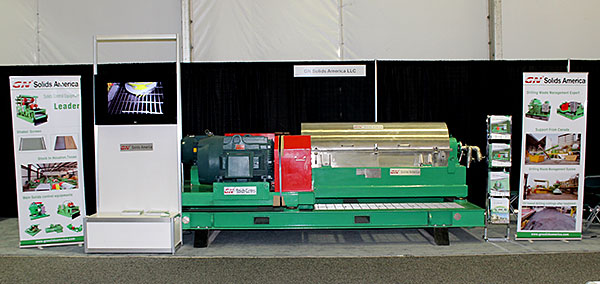展會(huì)上很多客戶(hù)對(duì)我們的22英寸的離心機(jī)表示出了強(qiáng)烈的興趣。我們離心機(jī)的轉(zhuǎn)鼓主要部件由2205雙相不銹鋼離心澆鑄而成,其他部件由316L不銹鋼制作而成。轉(zhuǎn)鼓里的螺旋推進(jìn)器鑲嵌了超過(guò)4mm的耐磨合金片,能夠有效提高使用壽命。為了滿(mǎn)足加拿大市場(chǎng)所要求的CSA標(biāo)準(zhǔn),我們展會(huì)離心機(jī)配備了符合CSA防爆標(biāo)準(zhǔn)的電機(jī)(125HP和50HP)以及變頻控制柜。從技術(shù)規(guī)格上來(lái)說(shuō),冠能的GNLW553-VFD離心機(jī)與市場(chǎng)上使用廣的Alfa Laval Lynx 40相當(dāng),并且已經(jīng)在石油天然氣鉆井固控系統(tǒng)、鉆井廢棄物處理以及隧道盾構(gòu)和淤泥處理等行業(yè)得到了廣泛的應(yīng)用。